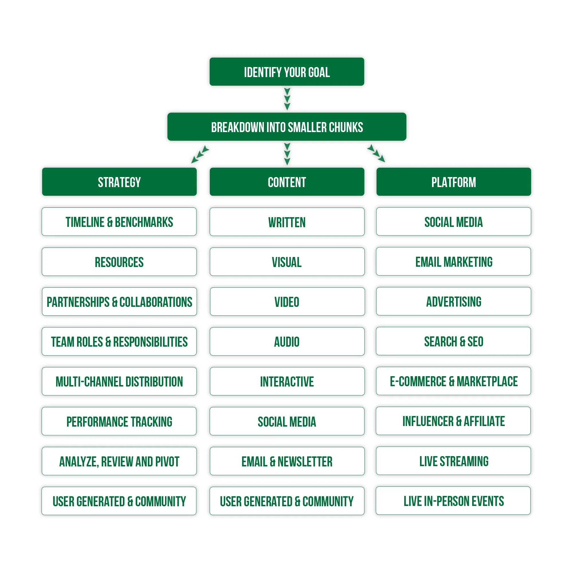 Chunking the Campaign: Divide the project into smaller sections: strategy, content creation, platform execution, and analysis. Focus on one piece at a time.